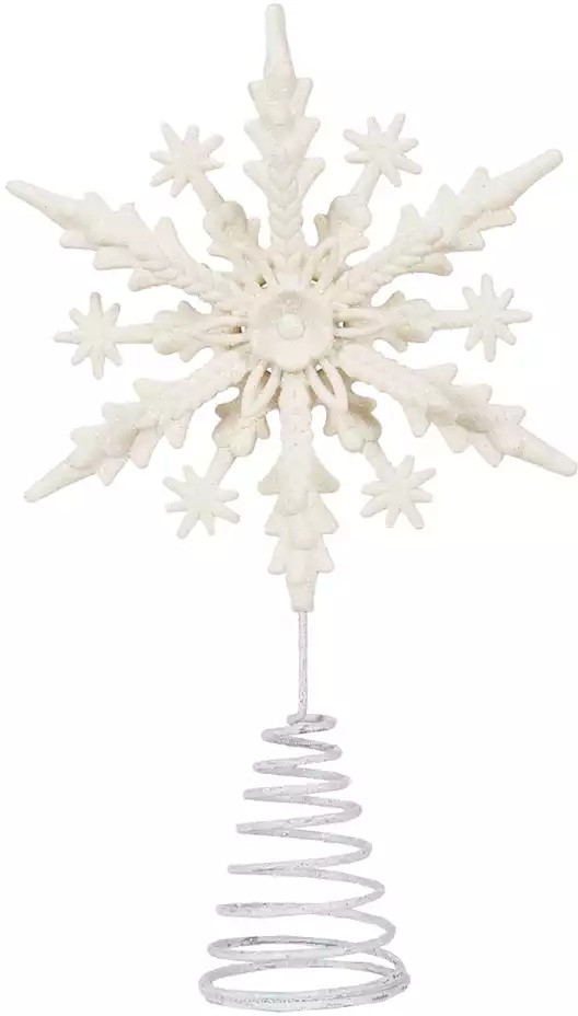 Декоративное украшение Верхушка 22см Снежинка белый пластик