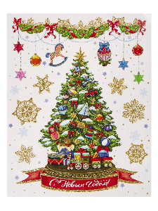 Оконное украшение Елочка с игрушками из ПВХ пленки (крепится посредством статического эффекта) с раскраской на картонной подложке /