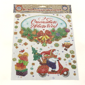 Оконное украшение Медведь на мопеде из ПВХ пленки (крепится посредством статического эффекта) с раскраской на картонной подложке / 3