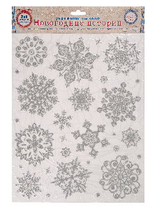Оконное украшение Серебряные кристаллики из ПВХ пленки (крепится посредством статического эффекта) с раскраской на картонной подложк