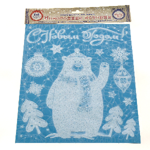 Оконное украшение Приветливый мишка из ПВХ пленки (крепится посредством статического эффекта) с раскраской на картонной подложке / 3