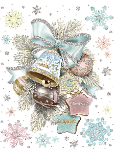 Новогоднее оконное украшение Колокольчики с Бантами из ПВХ пленки декорировано глиттером с раскраской на картонной подложке 30х38см 81321