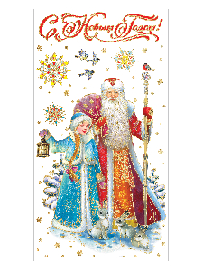 Оконное украшение Дед Мороз и Снегурочка из ПВХ пленки (крепится посредством статического эффекта) с раскраской на картонной подложк