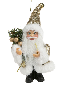 Новогодняя подвесная фигурка Дед Мороз в золотистой шубке из пластика и ткани 9x5x13см 81519
