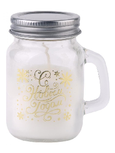 Новогодняя ароматизированная парафиновая свеча Кружки в шоубоксе, вылитая в стеклянной банке / 7.8х5х8.5см арт.78537