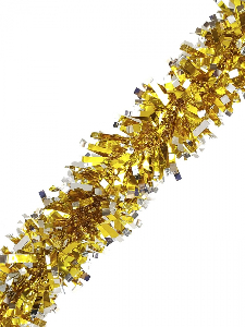 Новогодняя мишура, выполненная из ПЭТ (полиэтилентерефталат), поможет Вам украсить свой дом к предстоящим праздникам. Новогодняя елка с таким украшением станет еще наряднее. Новогодней мишурой можно украсить все, что угодно: елку, квартиру, дачу, офис, как внутри, так и снаружи. Можно сложить новогодние поздравления, буквы и цифры, мишурой можно украсить и дополнить гирлянды, можно выделить дверные колонны, оплести дверные проемы. Коллекция декоративных украшений из серии п. Новогодняя мишура Золотая с серебристыми вставками из ПЭТ, размер 9х200см