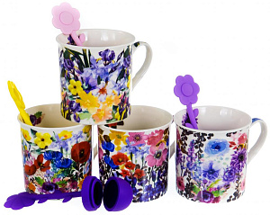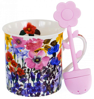 Кружка заварочная 300мл BALSFORD Цветы силиконовое сито подарочная упаковка фарфор