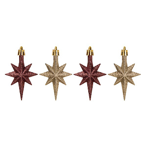 Декоративное украшение Набор 4шт 8,5х5,5см Звезда серия Бургунд микс пластик