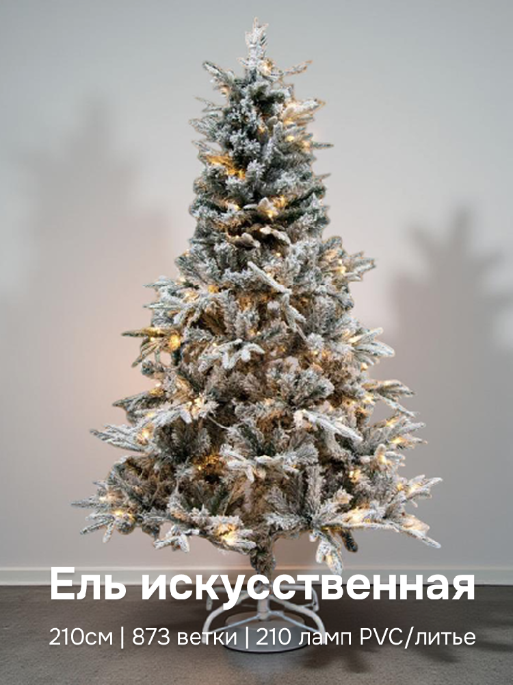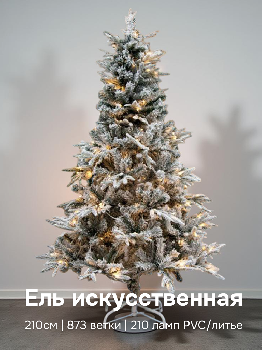 Ель искусственная 210см 873 ветки Заснеженная 210 ламп PVC/литье