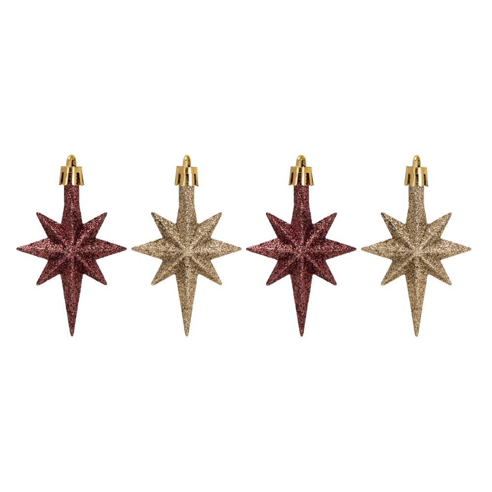 Декоративное украшение Набор 4шт 8,5х5,5см Звезда серия Бургунд микс пластик