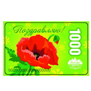 Подарочная карта Поздравляю – это универсальный подарок, который придется по вкусу каждому. Картой можно поздравить друзей и знакомых с любым праздником или торжественной датой, или просто использовать ее как повод сделать приятно близкому человеку. Покупая картув подарок, можно забыть о муках выбора и не гадать, понравится ли дар получателю. По подарочной карте каждый может выбрать себе то,что ему нужно и о чем давно мечталось. Картой можно оплатить любой товар из ассортимента «Посуда Центр». Номинал карты – 1000 рублей, сумму на карте можно использовать сразу полностью или постепенно по частям. Подарочная карта активируется на следующий день послепродажи (без активации не действительна) и действует в течение 12 месяцев после этой даты.