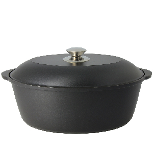Утятница "Kukmara" изготовлена из литого алюминия и покрыта немецким антипригарным покрытием Greblon Non-Stick C2+, усиленным керамическимичастицами. Особенности: не деформируется, утолщенное дно до 6 мм, подходит для всех типов плит, кроме индукционных, возможность использования в духовом шкафу, можно мыть в посудомоечной машине.