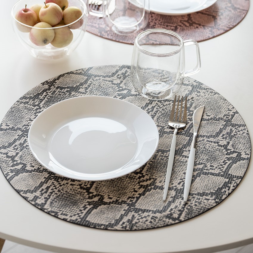 Салфетка сервировочная D38 DE'NASTIA Питон круг черный искусственная кожа ПВХ