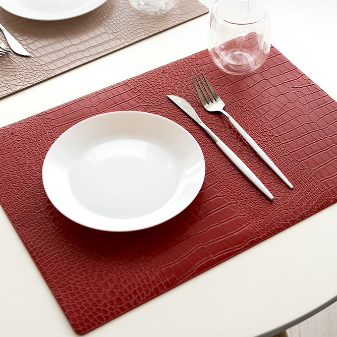 Салфетка сервировочная 45х32см DE'NASTIA Крокодил прямоугольник красный искусственная кожа ПВХ
