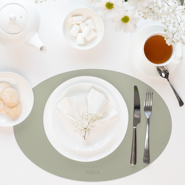 Салфетка серв DeNASTIA Двусторонняя, 45x32 овал, ПВХ, оливковый/серый E000509