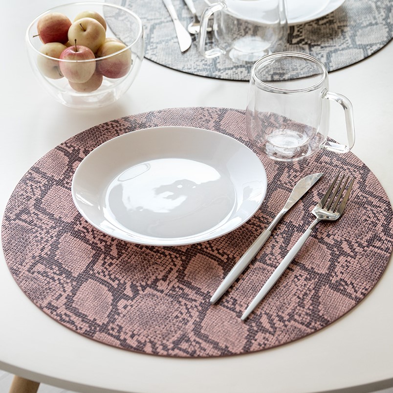Салфетка сервировочная D38 DE'NASTIA Питон круг розовый искусственная кожа ПВХ