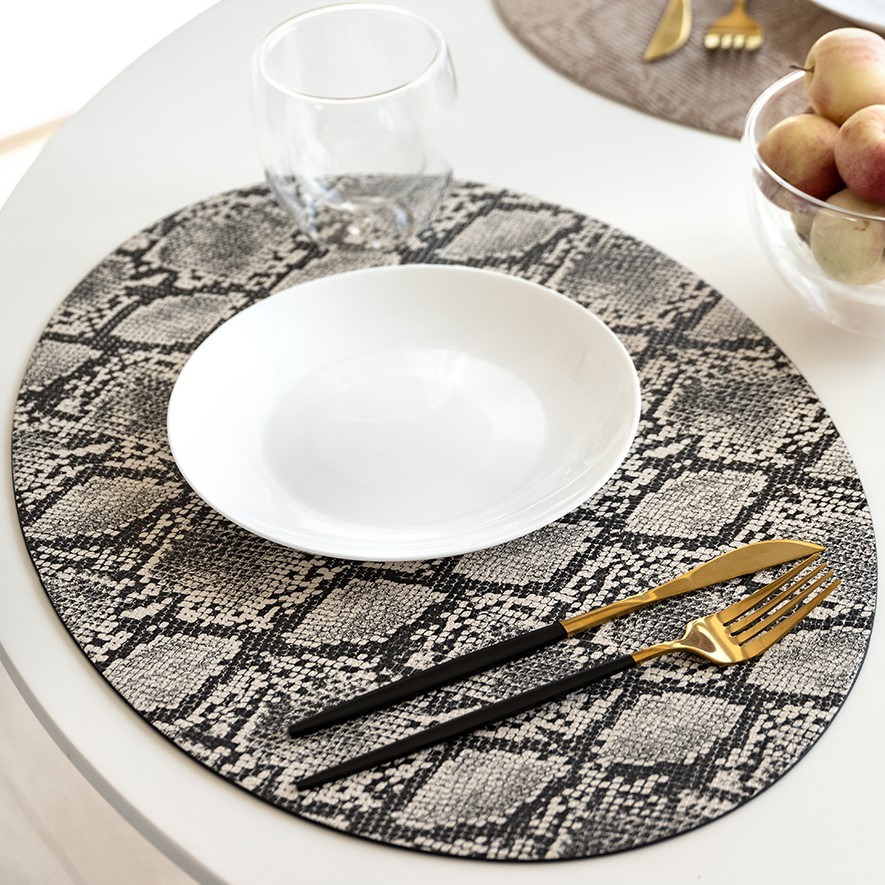 Салфетка сервировочная 45х32см DE'NASTIA Питон овал черный искусственная кожа ПВХ