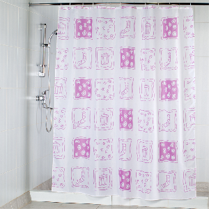 Штора 180х200см. , цв. розовый, 100% Полиэстер, Водонепроницаемая,Стирается в машине, Набор из 12 колец. 48657