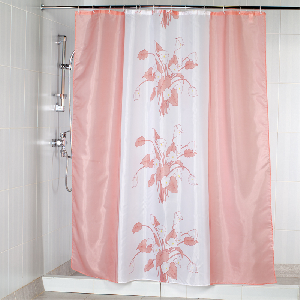 Штора 180х200см. "Цветы", цв. розовый, 100% Полиэстер, Водонепроницаемая,Стирается в машине, Набор из 12 колец.