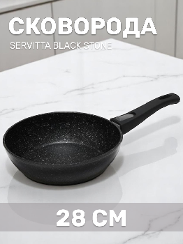Сковорода SERVITTA BLACK STONE изготовлена из кованого алюминия с использованием внутреннего покрытия PFLUON.