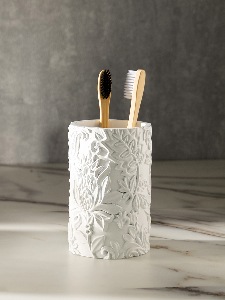 Стакан для зубных щёток DE'NASTIA Лепные цветы белый полирезина