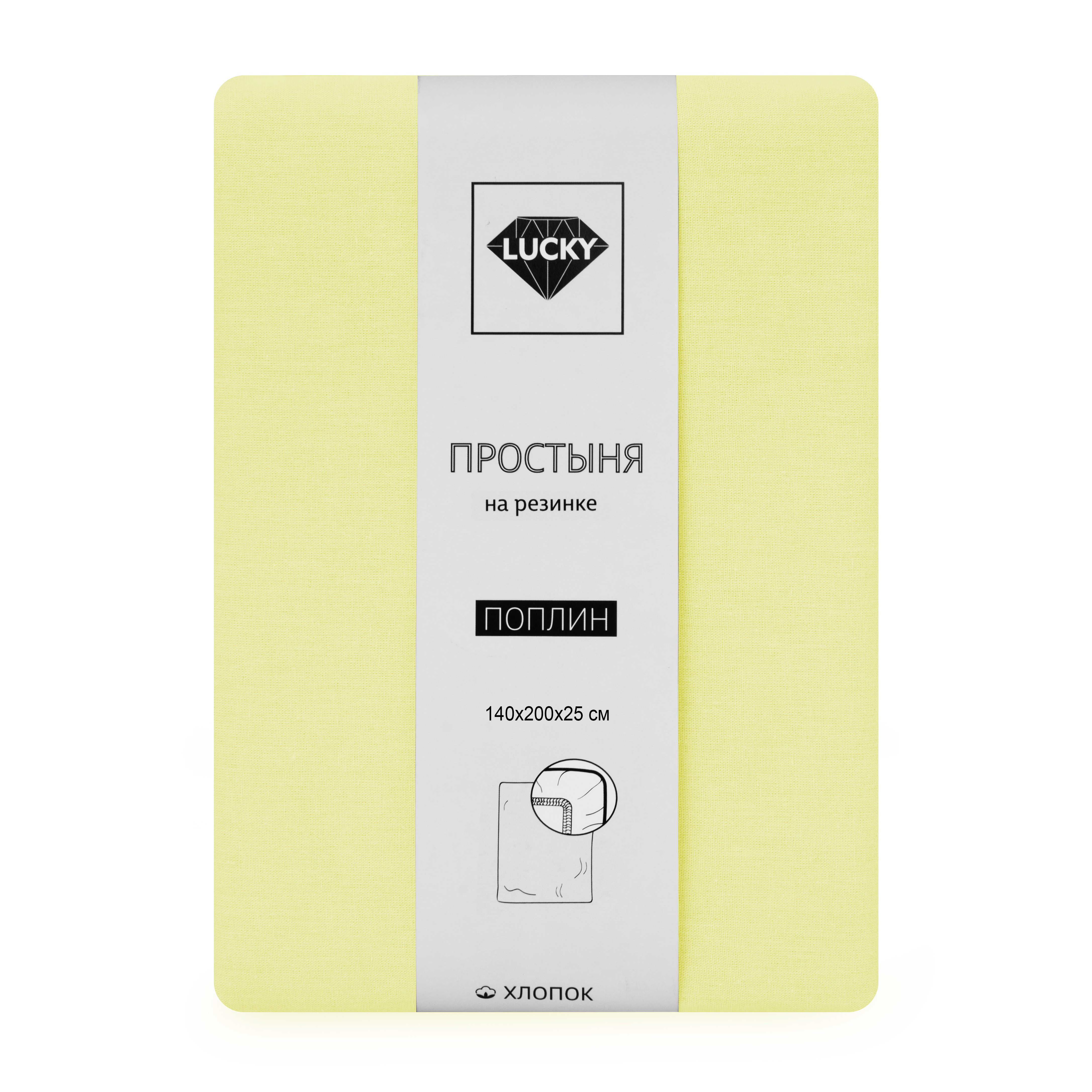Простыня на резинке 140х200х25см LUCKY канареечный поплин хлопок 100%