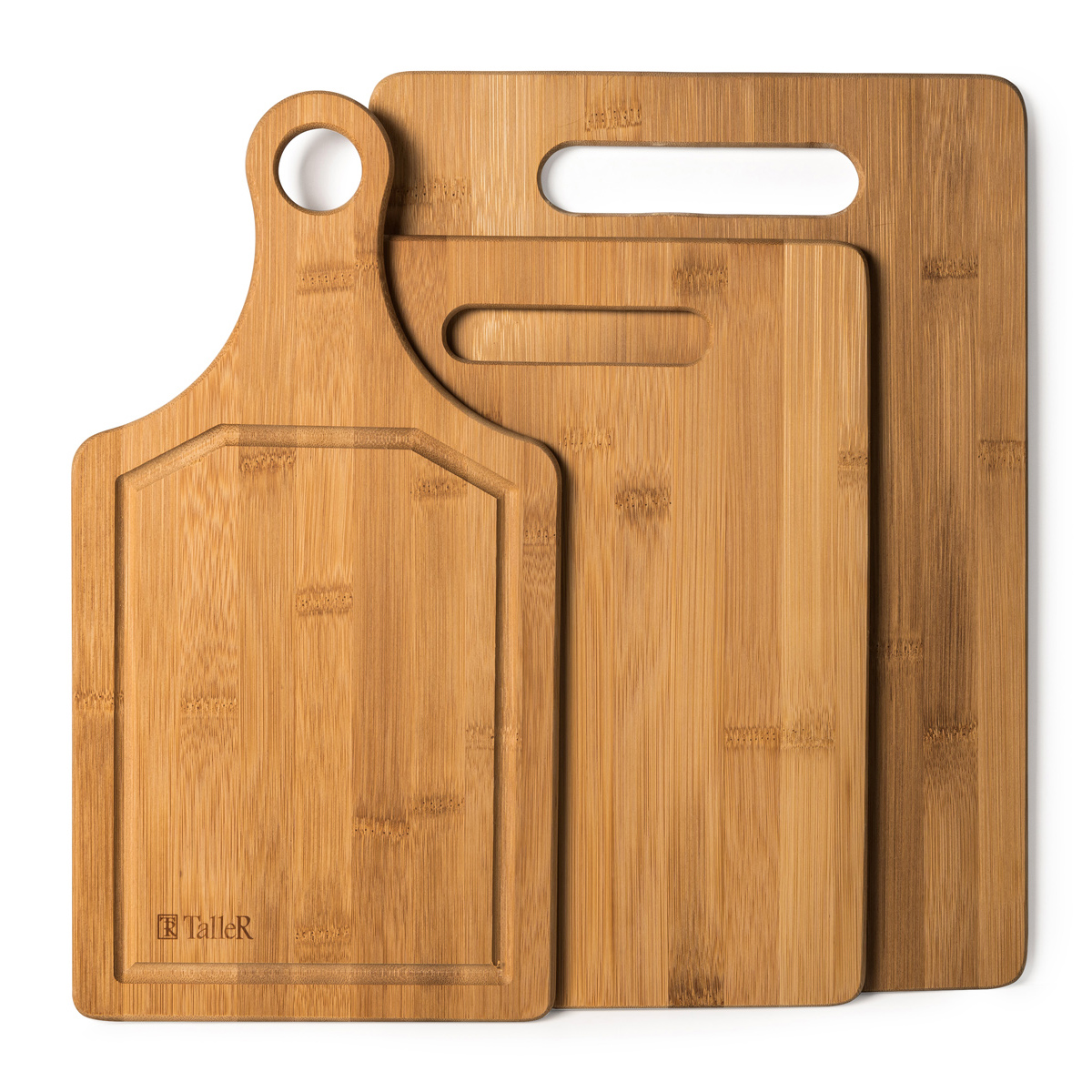 Кухонные принадлежности торговой марки Taller – это сочетание передовых технологий и традиционного английского стиля. Созданные из высококачественных материалов, они воплощают в себе функциональность, практичность и современный дизайн. Набор из трех разделочных досок Taller пригодится на каждой кухне. Изготовленные из бамбука доски экологичны и прочны, не впитывают запахи и легко моются. Они оснащены отверстием для подвешивания, а малая доска специальным желобком по краю, что обеспечивает аккуратность в процессе готовки. Бамбуковые доски рекомендуется мыть вручную.