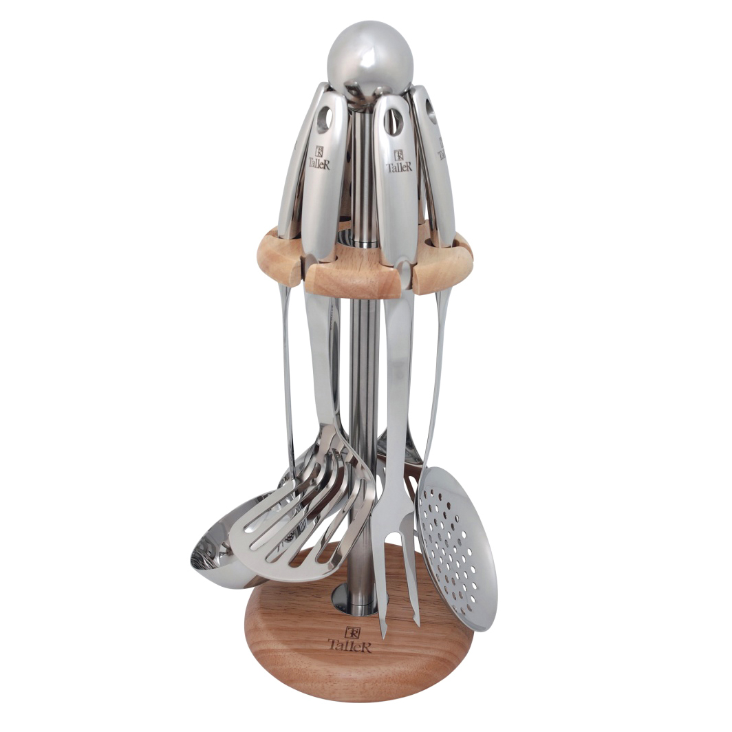 Набор кухонный 7 предметов TALLER Колдвел с подставкой нержавеющая сталь/дерево