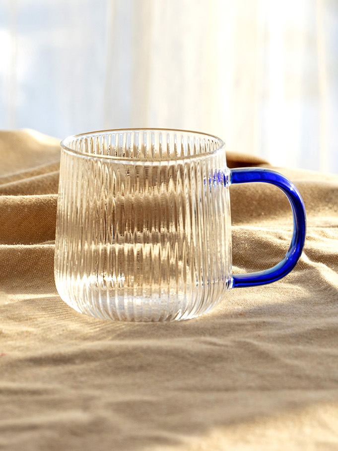 Кружка 350мл 7,7x8,3см LUCKY Гофре темно-синяя ручка стекло