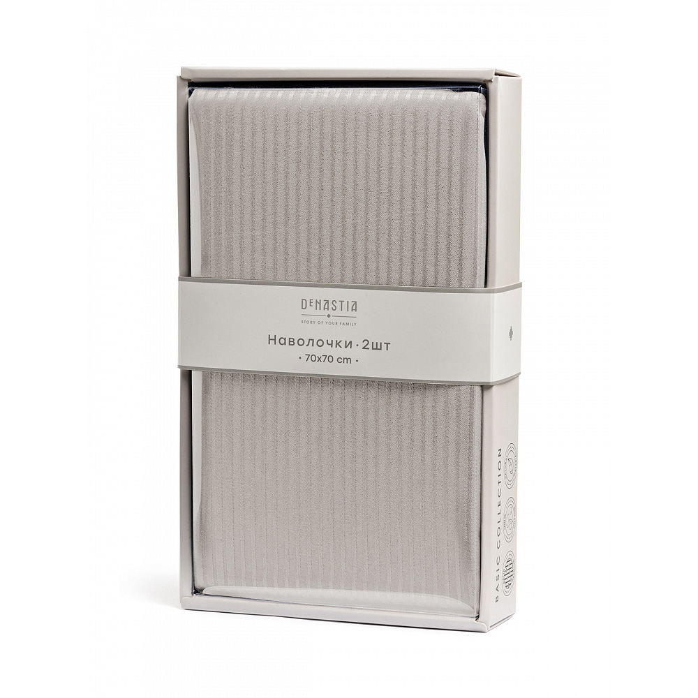 Наволочки 70x70см 2шт DE'NASTIA светло-серый страйп-сатин 1/3мм хлопок
