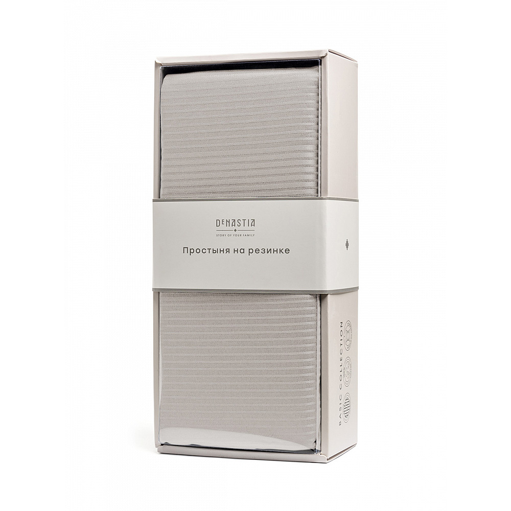 Проcтыня на резинке 90х200+25см DE'NASTIA светло-серый страйп-сатин 1/3мм хлопок