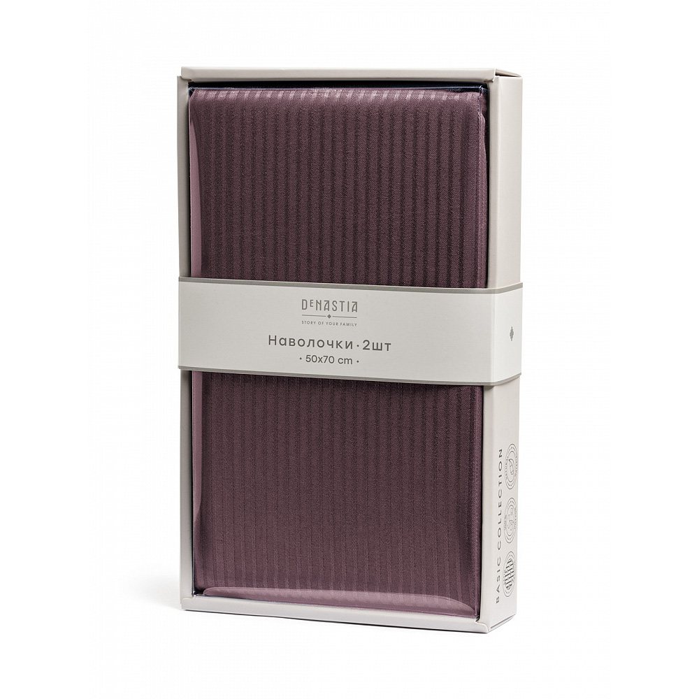 Наволочки 50x70см 2шт DE'NASTIA пурпурный страйп-сатин 1/3мм хлопок