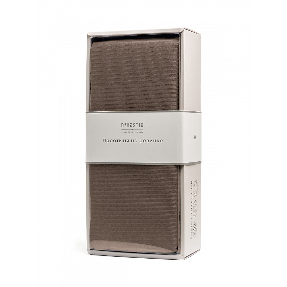 Простыня на резинке 180x200+25см DE'NASTIA коричневый страйп-сатин 1/3мм хлопок