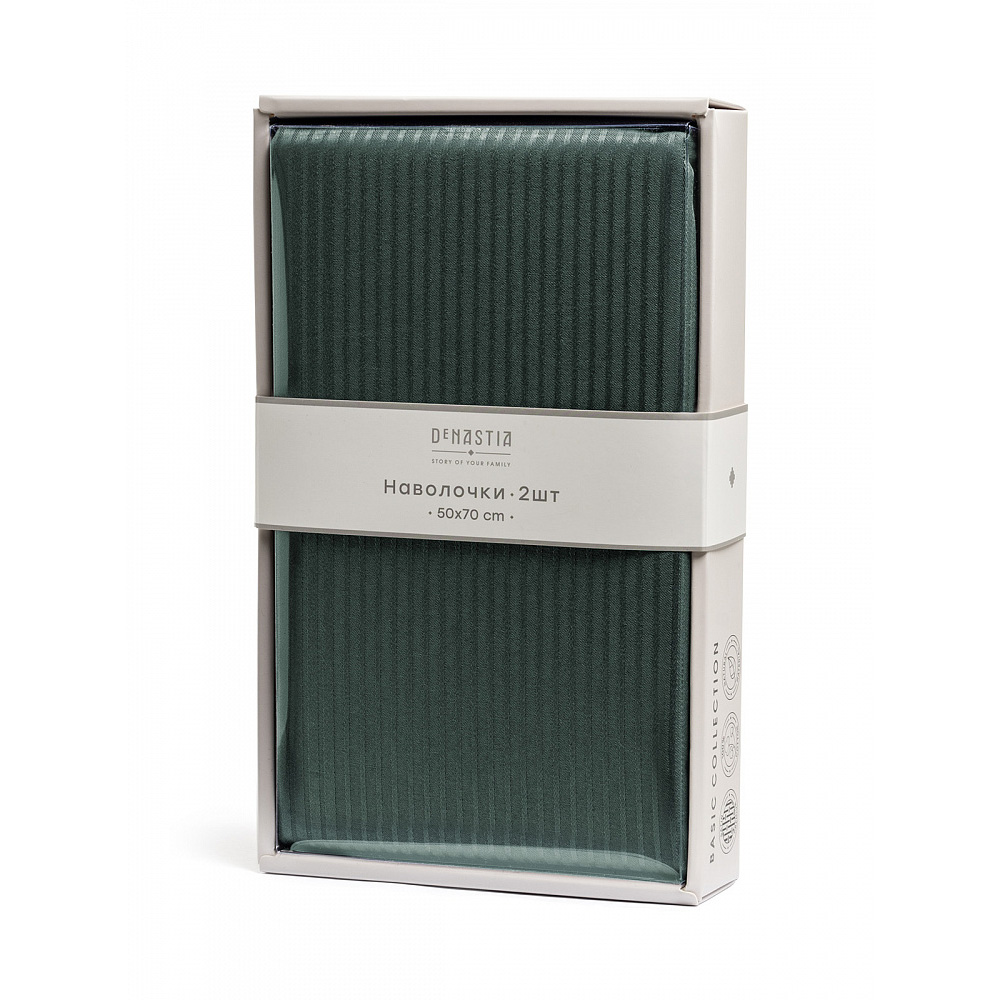 Наволочки 50x70см 2шт DE'NASTIA зеленый страйп-сатин 1/3мм хлопок