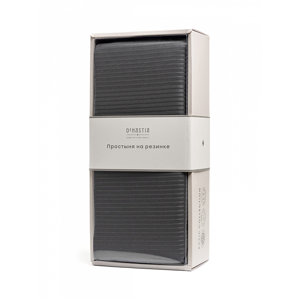 Проcтыня на резинке 90х200+25см DE'NASTIA темно-серый страйп-сатин 1/3мм хлопок