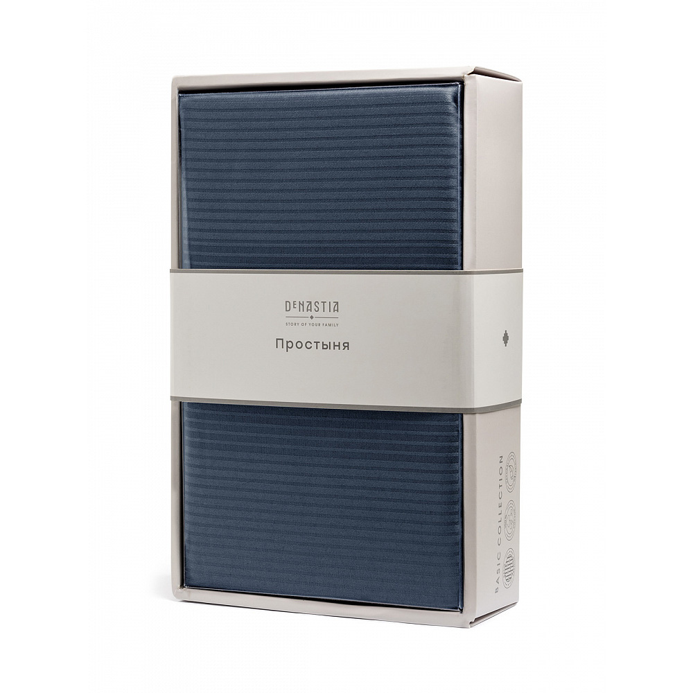 Простыня 160x240см DE'NASTIA синий страйп-сатин 1/3мм хлопок