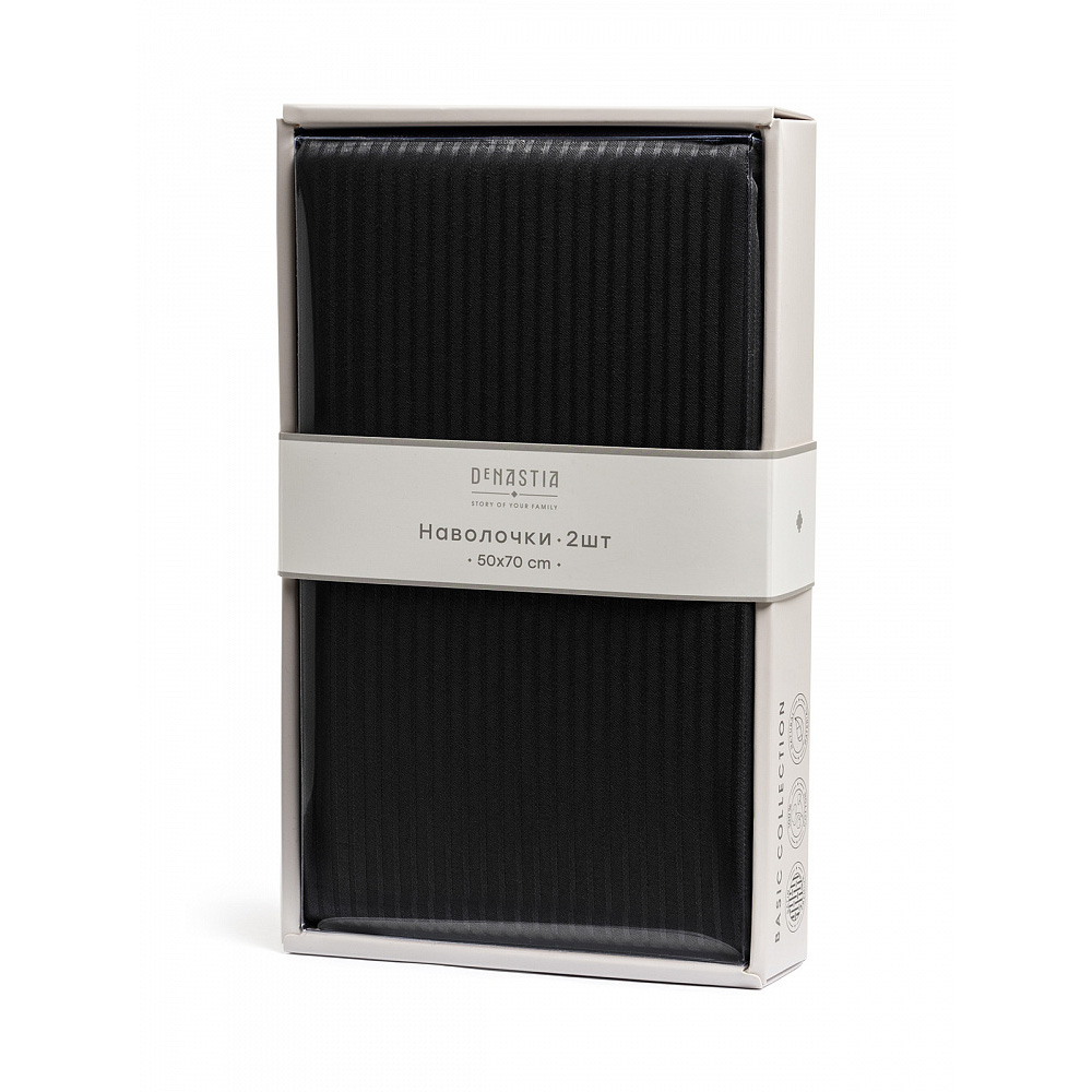 Наволочки 50x70см 2шт DE'NASTIA черный страйп-сатин 1/3мм хлопок