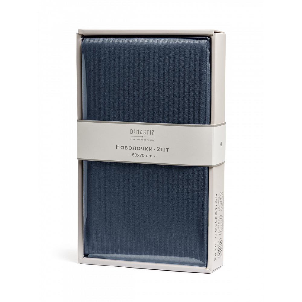 Наволочки 50x70см 2шт DE'NASTIA синий страйп-сатин 1/3мм хлопок