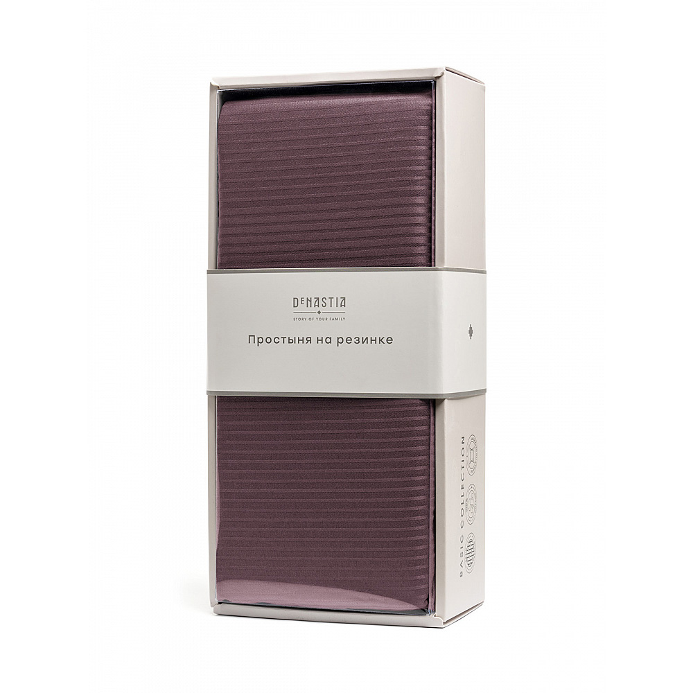 Проcтыня на резинке 90х200+25см DE'NASTIA пурпурный страйп-сатин 1/3мм хлопок