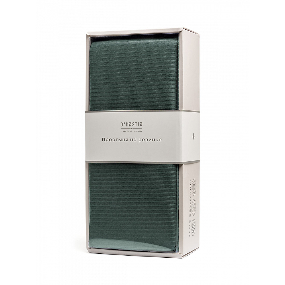 Простыня на резинке 180x200+25см DE'NASTIA зеленый страйп-сатин 1/3мм хлопок