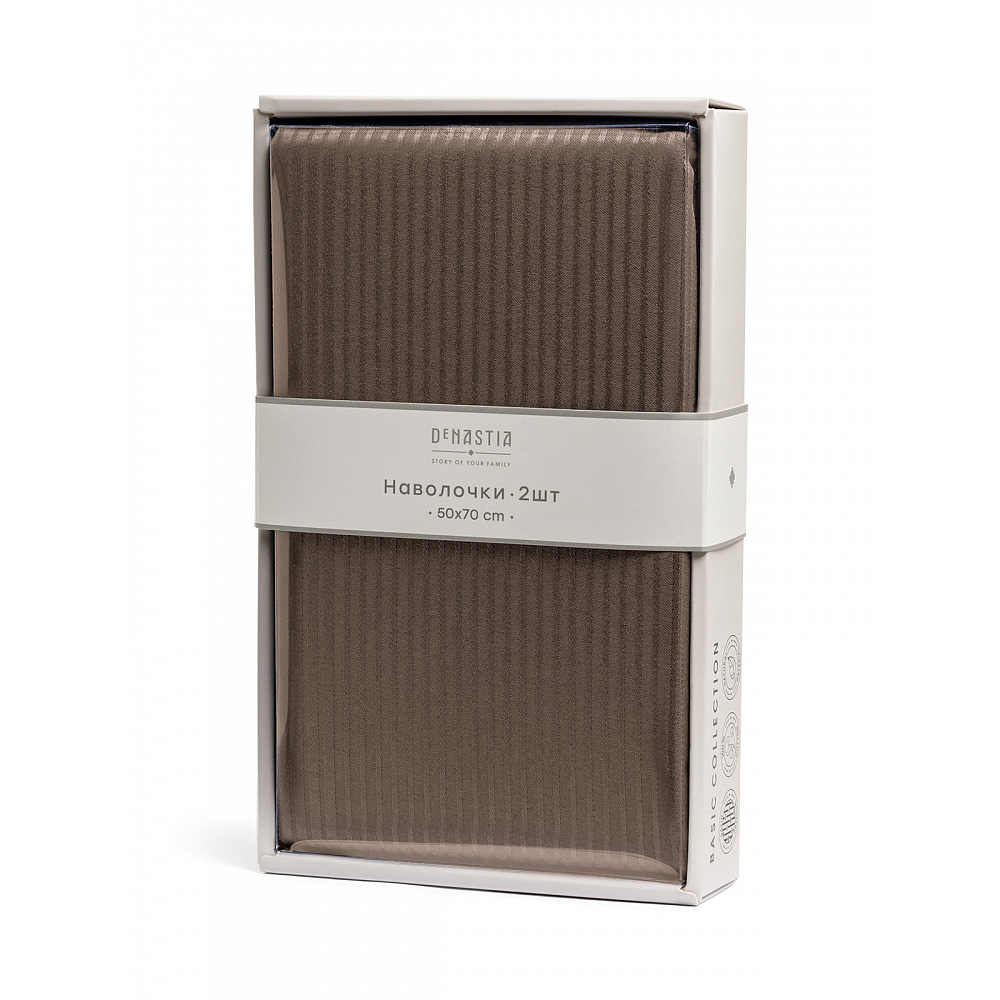 Наволочки 50x70см 2шт DE'NASTIA коричневый страйп-сатин 1/3мм хлопок