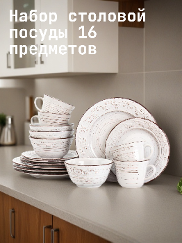 Набор столовой посуды 16 предметов (обеденная 26см-4шт/десертная 20см-4шт/салатник 15см -4шт/кружка 390мл-4шт) керамика