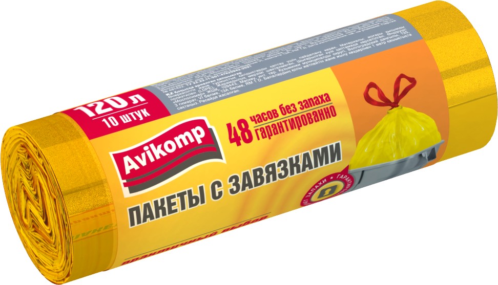 Мусорные пакеты с завязками Avikomp, 120л, 10 шт.