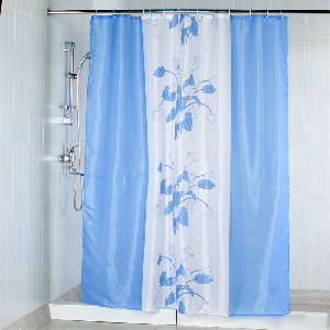 HSP394-B Штора 180х200см."Цветы", цв. Голубой , 100% Полиэстер, Водонепроницаемая, Стирается в машине, Набор из 12 колец. 48664