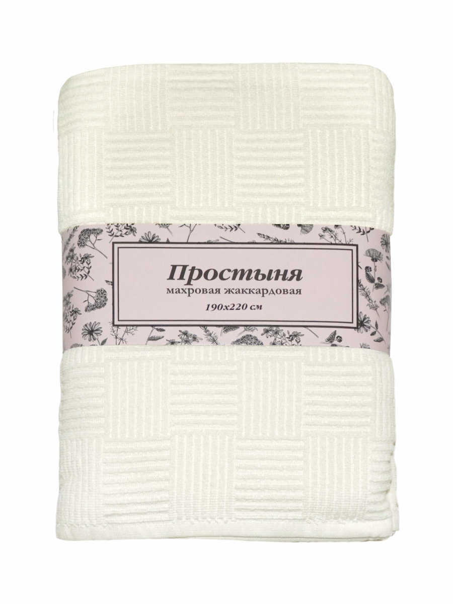 Простыня махровая 200x220см DE'NASTIA молочный жаккард хлопок
