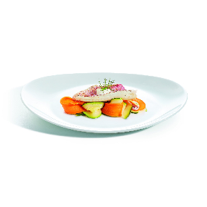Форма тарелки и слегка приподнятые края не позволят стейку скользить, когда вы его разрезаете.
