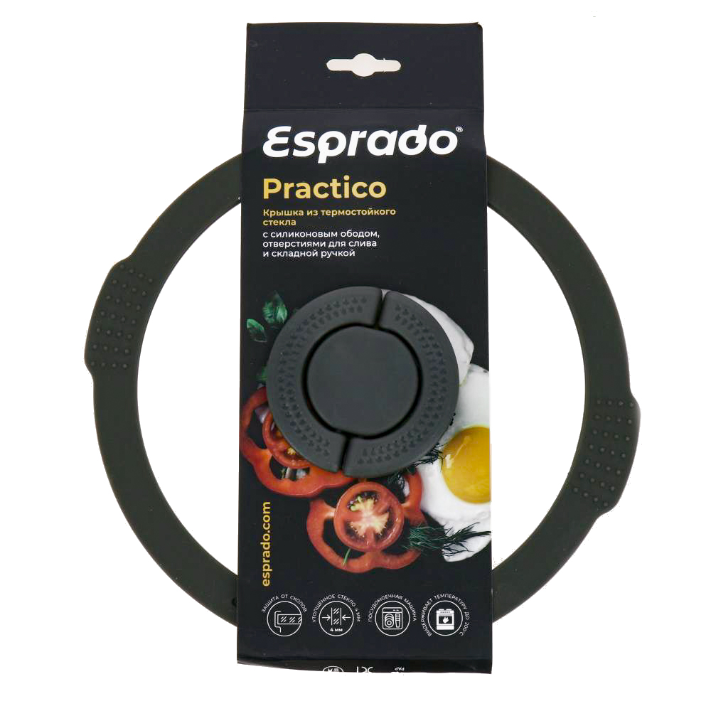Крышка 24см ESPRADO Practico паровыпуск два слива силикон/стекло