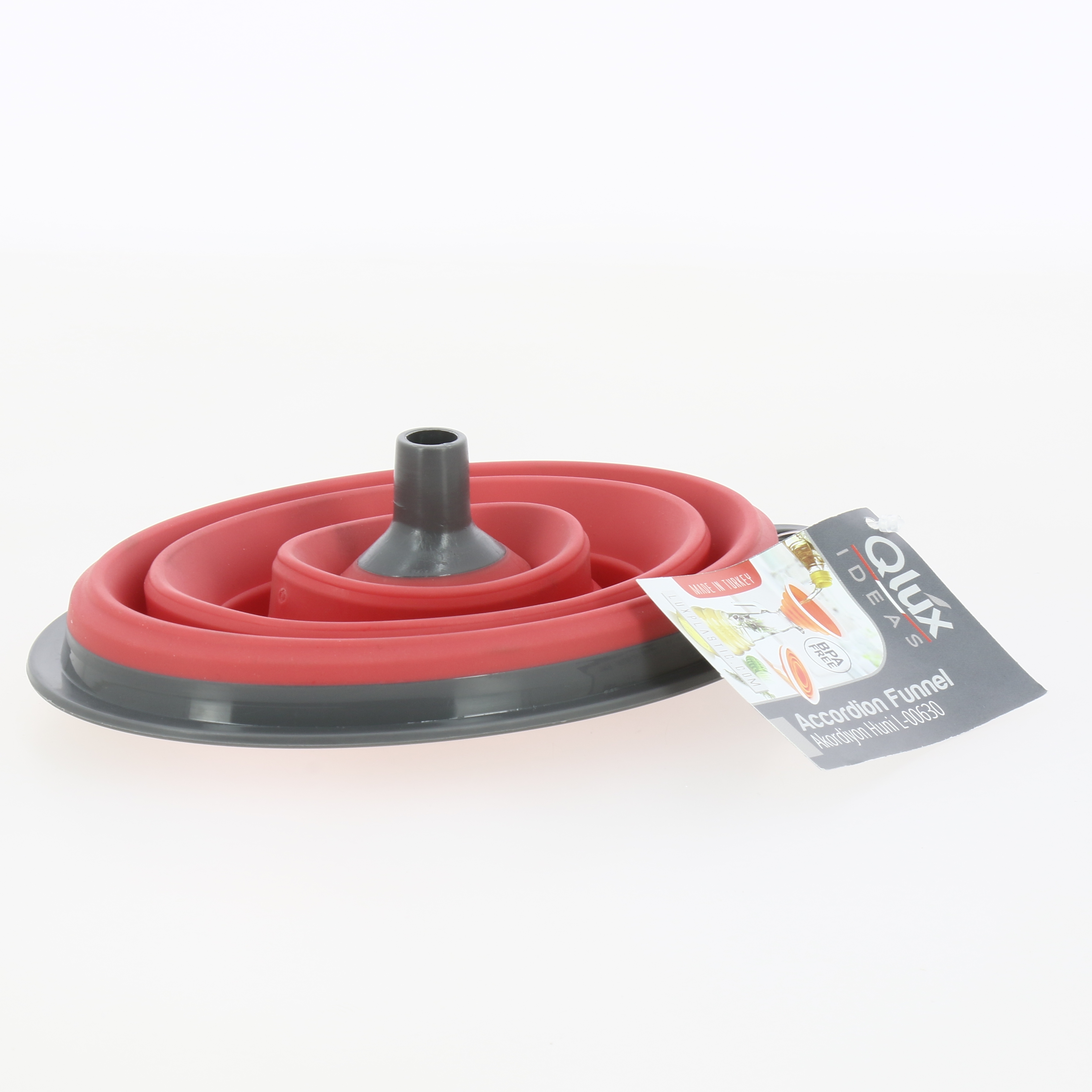 Воронка в быту используется не так уж и часто, но вещь, при этом, совершенно необходимая. Когда возникает потребность перелить жидкость в емкость с узким горлышком или пересыпать мелкозернистые продукты, без воронки просто не обойтись! Предлагаем уникальную складную емкость диаметром 11.5 см, которая не только успешно выполняет прямые функции, но и значительно экономит место на кухне. Высота изделия в сложенном виде составляет всего 3 см, поэтому хранить его намного удобнее, чем обычные аналоги. Есть отверстие для навесного хранения. Выдерживает многократные складывания раскладывания. Легко переносит мойку и сушку в посудомоечной машине. Особая конструкция всех сегментов не позволяет аксессуару складываться в процессе использования.