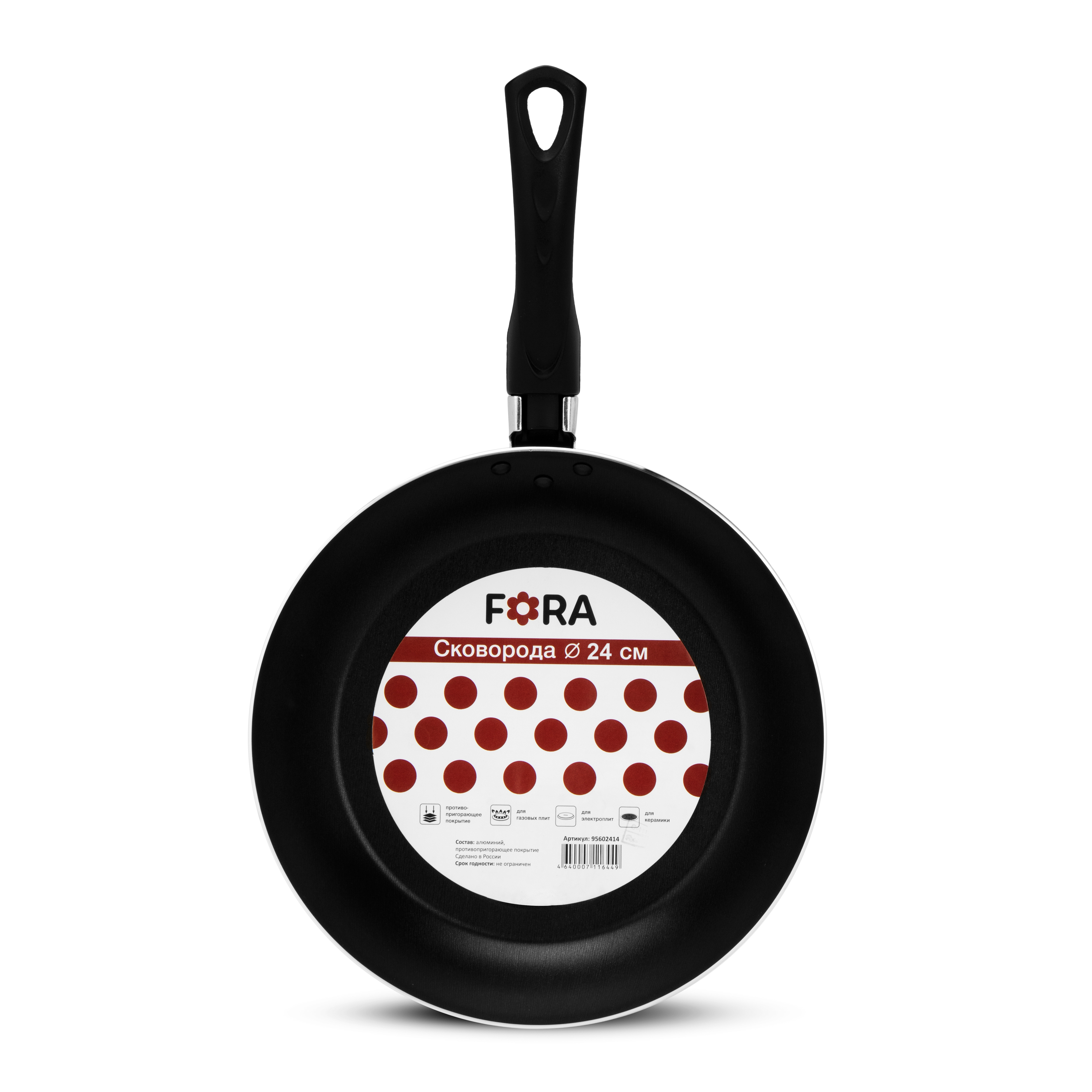 Сковорода 24х4,3см FORA антипригарное покрытие бакелитовая ручка бордо алюминий