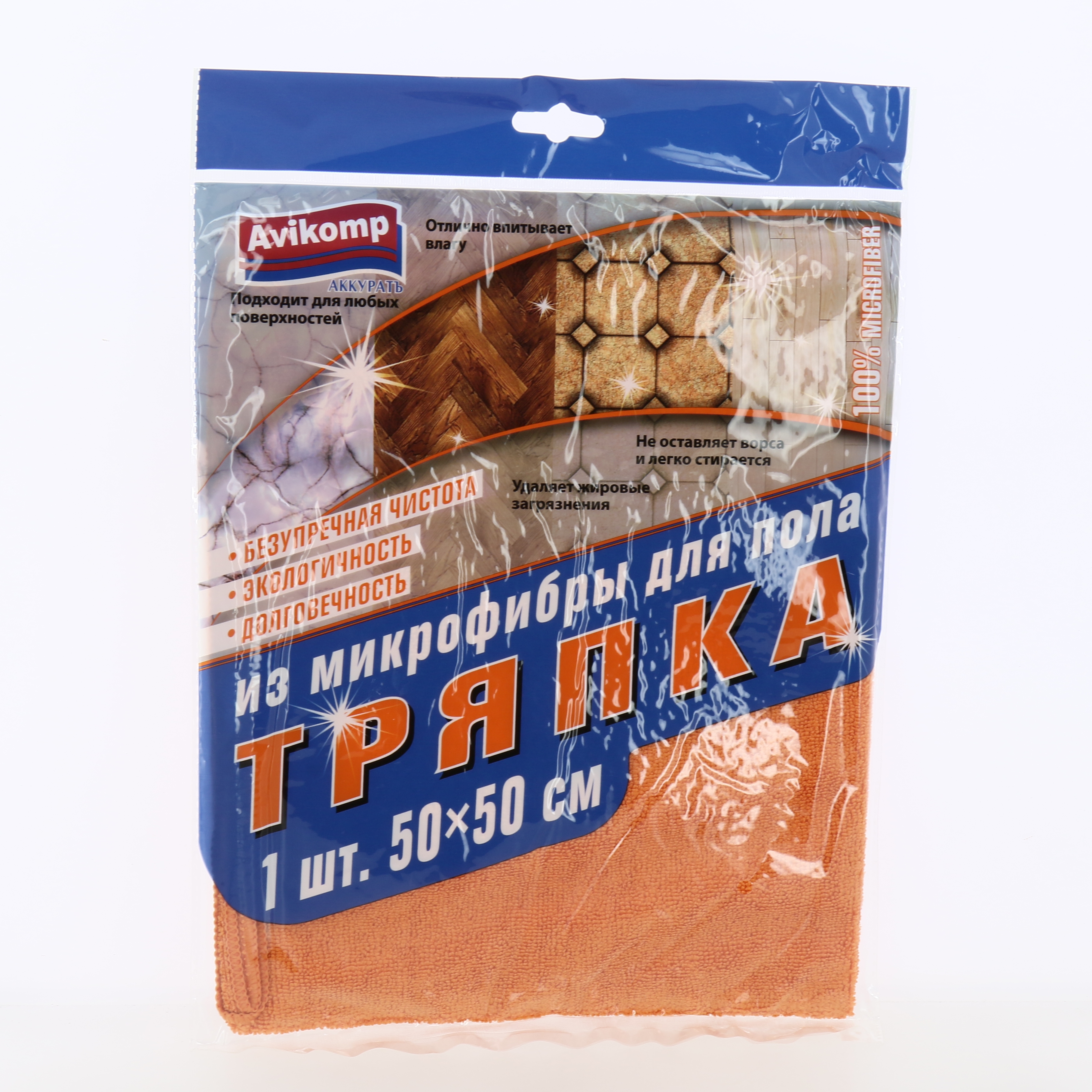 Тряпка для пола 50х50см 1шт AVIKOMP оранжевая микрофибра полиэстер/ полиамид